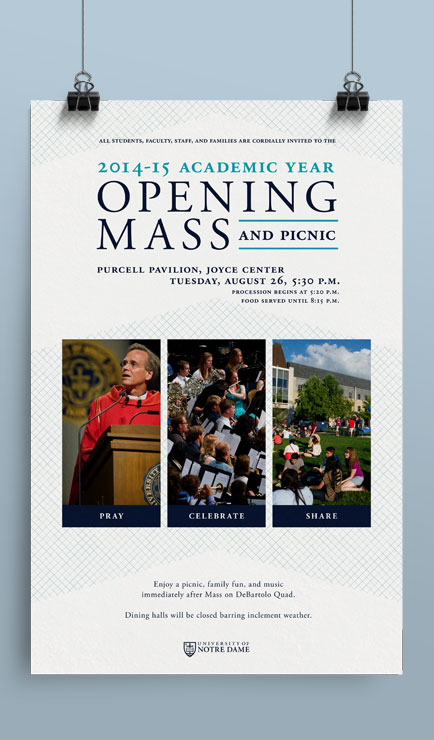Poster to welcome faculty, staff, and students to the Opening Mass for the 2014-2015 Academic Year