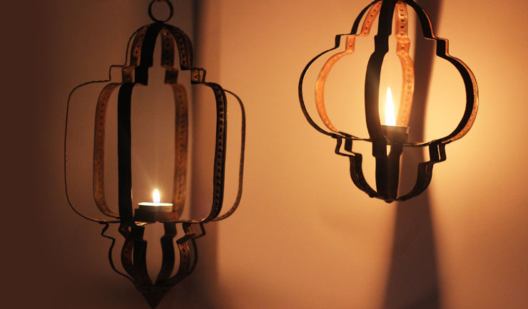 A large and small light designed in the same pattern in order to be mixed and matched