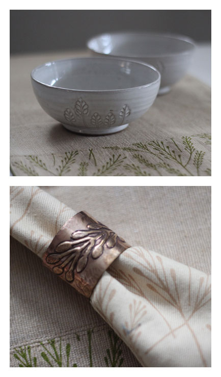 Design for bowls, table runner, napkins, and napkin rings
