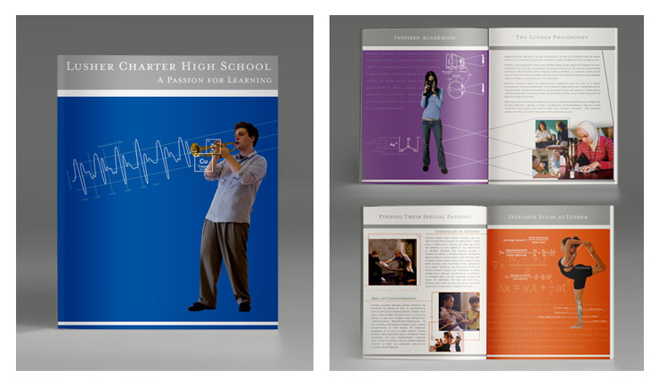 Brochure to highlight the unique approach Lusher Charter School takes to education by using art to aid in student learning across all courses