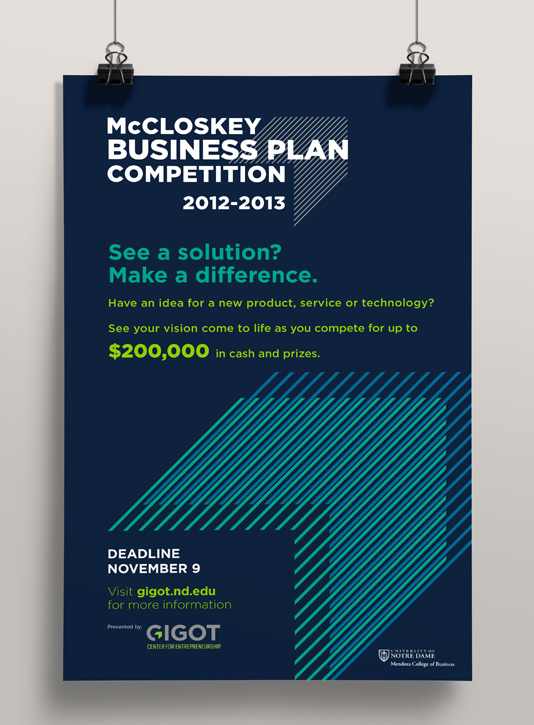 Logo design and branded poster for Notre Dame's yearly McCloskey Business Plan Cometition