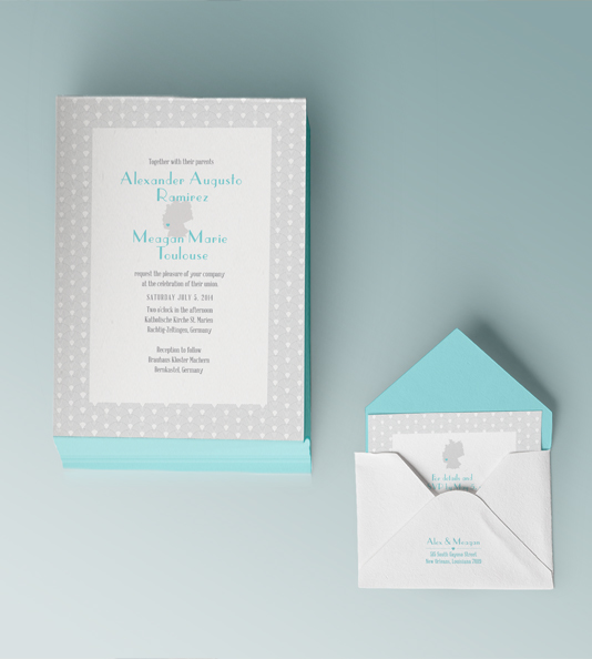 Custom illustrated and designed wedding invitations and response cards