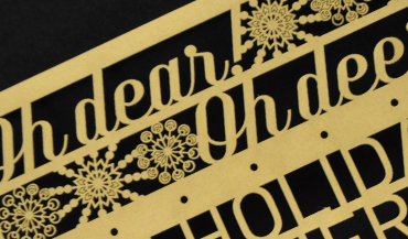 Vector drawn and laser-cut Christmas card on metallic gold paper